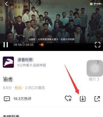 找到想要下载的视频之后,点击进入观看视频页面,可以看到所播放视频的下面有一个下载的按钮,点击该下载按钮,如图所示。