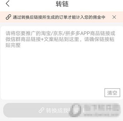 2、然后再在”我的“个人信息界面中选择“转链”功能,将刚才复制的订单转换成链接分享给好友就可以了。