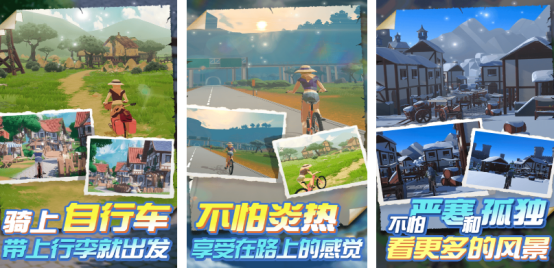 自行车是此游戏中的主要题材,很多人都想来一场说走就走的旅行,而在此游戏中,大家可亲自体验骑行的快感,骑着自行车环游整个世界,将各地的特色美景全部尽收眼底。其次还会遇到很多突发的情况,比如车子。坏了或者是极端的天气变化等等,面对这些突发的情况时,都需特别勇敢又机智地完成应对。