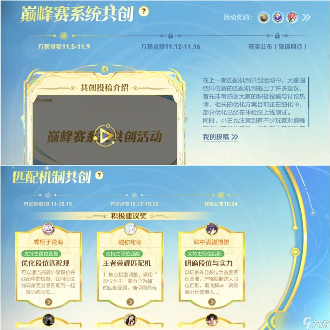另外,匹配机制和巅峰赛的共创方案也有动静。具体内容跟之前说的一样:按主段位匹配、显示段位、匹配时间公开,还有打强敌加分多。这些都是玩家共创的点子。这周四会在“高星”进行灰度测试新的匹配机制,希望能改的好一些吧!