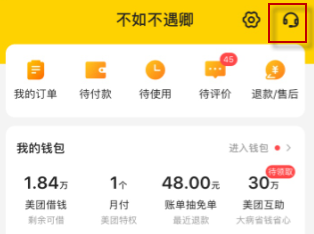 1、打开美团app的“我的”界面,点击右上角的“客服图标”;
