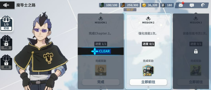游戏刚开始的时候,最重要的就是主线任务,一定要做,不仅能得到不少经验,还有很多其他的奖励可以领到。比如第一章完成之后,系统会送出三位强力角色,分别是亚斯塔、尤诺和夏洛特,这几个人在前期的推图上简直是“无敌”。而且你完成了主线任务后,还能解锁“魔导士之路”,这个任务链的奖励相当给力,能拿到SSR万能碎片以及亚斯塔的专属技能书页,关键是还能解锁命运之门,能够选一个SSR角色,直接提升战力。