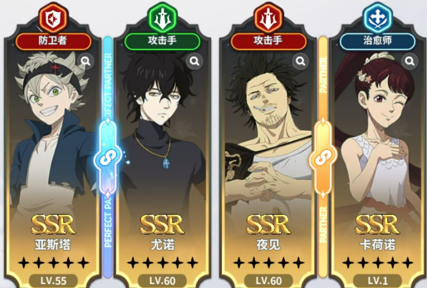 如果是PVP的话,建议可以尝试“亚斯塔+玛格那+凡金斯+夏洛特”这一套阵容,前期通过控制技能抢占先手是非常重要的,而高难度副本挑战,比如魔法帝挑战,可以选择“夜见+葛修+米莫萨+拉克”的组合,更稳妥一点。尤其是有羁绊关系的角色,可以通过搭配释放合击技能,像亚斯塔和尤诺组合就能提升攻击和暴击,战斗时的表现会更出色。