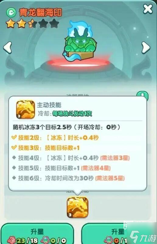 然后防御法器目前只推荐升瑶光潜渊贝,有条件升满星,没条件最少3星,效果最好