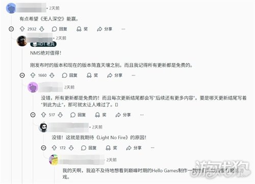 值得一提的是,在该帖子的讨论下,玩家们大多支持另一款持续更新的游戏——《无人深空》,玩家们指出一个能做到每年都有免费大型更新,且不存在任何微交易的游戏才值得拥有这两个奖项。