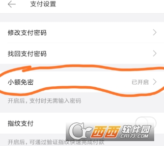 第三步:在“支付设置中”找到“小额免密”,点击打开。