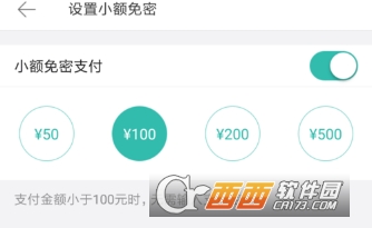 第四步:想要开启该功能需要先输入支付密码。进入设置界面,点击开启后,会有免密金额的选择,有50,100,200和500的选项,根据自身情况选择即可。