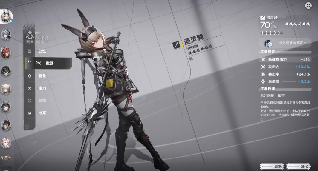 她的1技能为关键控场手段,释放时以长枪进行旋转打击,对周围单位造成总计500%的脉冲伤害,并附带中等强度的击退效果,能够有效打断敌方冲锋或突进行为。虽然技能存在轻微前摇,但面对高速移动目标时仍具备良好应对能力,无需频繁调整站位即可稳定命中。