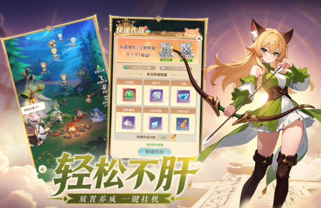 这款游戏存在多个职业设定,总会有大家喜欢的职业选项。游戏里,每灭杀一个boss,你就有极其大的概率拿到神品装备或神品武器,再不济也能拿到时装、道具等,这无疑提高了每个玩家的积极性。游戏拥有放置功能,即使你已经离线了,游戏里的角色也会一直打怪探险,为你积累资源。游戏促使你能和好哥们联手对付boss,你们相互的情谊才更绵长。
