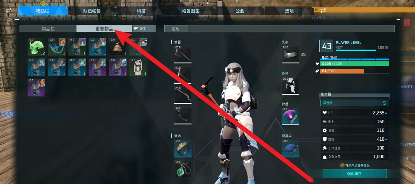 首先,要想给帕鲁喂食,玩家需要进入游戏中的物品栏,这个物品栏是存放所有道具和物品的地方。在物品栏里,玩家可以找到【重要物品】这一项,点击进入后,就可以看到许多重要的物品。而接下来,要给帕鲁喂食的关键就在于选择好喂食的道具。