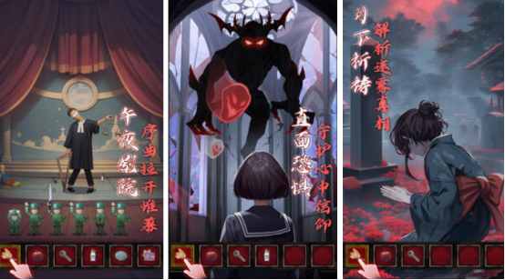 以中国传统民俗文化为背景,构建出一个充满神秘色彩的悬疑世界。游戏中登场的角色如陶梦嫣、宁子服等,各自背负着不为人知的过往。故事从一场诡异的婚礼现场展开,气氛压抑且异常,引导玩家进入一个由迷信、传说与真实交织而成的谜境。通过点击操作探索场景,收集线索,解开一道道烧脑谜题,逐步还原事件背后的完整真相。
