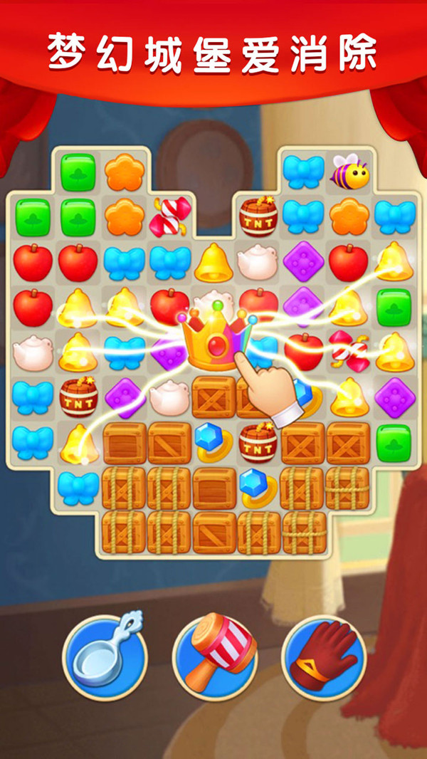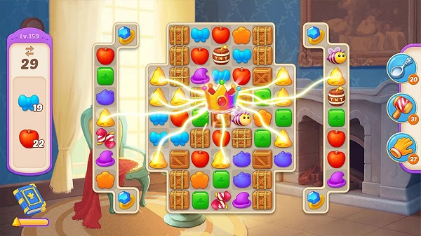 以童话风格的城堡与经典王子公主设定为核心亮点,庞大的家园系统包含多种待完成的任务,均需通过连线消除机制达成目标。每次任务开始前会明确提示所需消除的物品数量,玩家只需点击相同图标进行连接即可完成操作。随着剧情深入,挑战难度逐步上升,关键时刻可使用辅助道具加快清除效率。