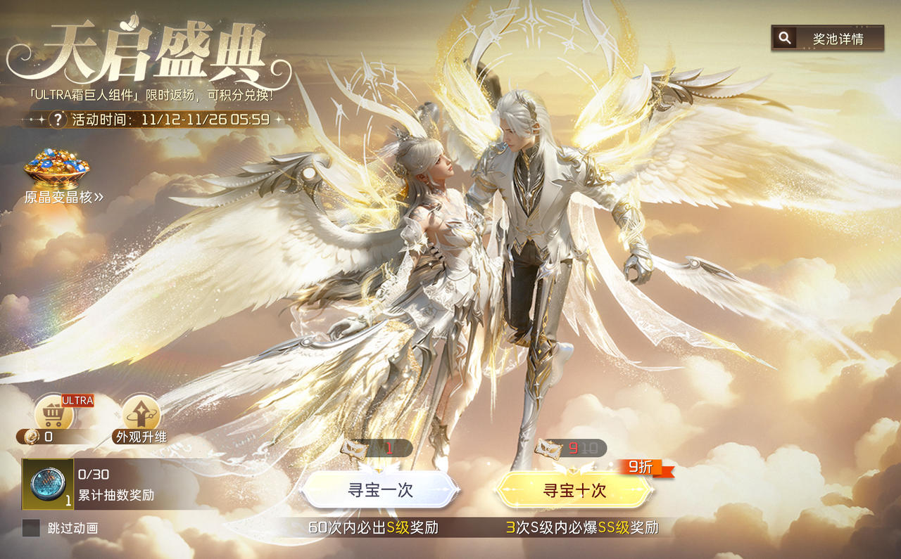 作为二周年特别活动,参与寻宝,60次内必出S级或SS级奖励,每3次S级内必出SS奖励,双重保底,放心抽!
