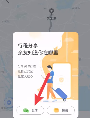 然后,点击【行程分享】