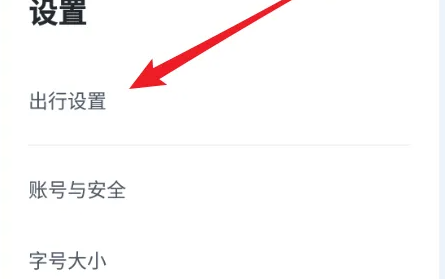 在设置页面选择“出行设置”选项,进入出行设置页面。