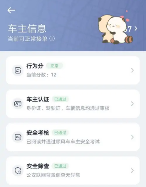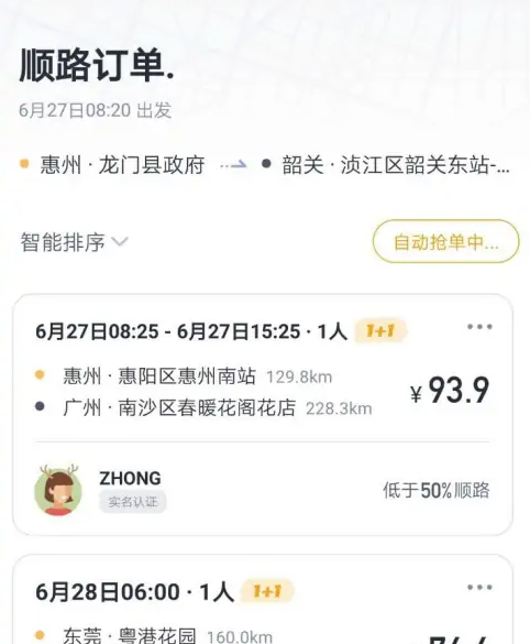 认证后,会出现以下信息,就证明你能接顺风车订单