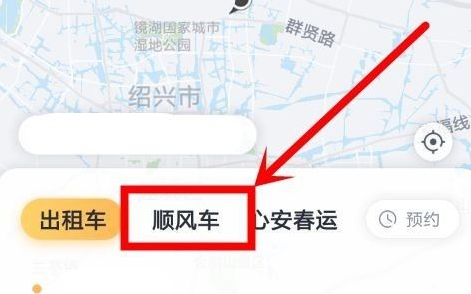 我们返回到嘀嗒出行首界面中,在该页面的中下位置找到顺风车这个选项,点击进入。
