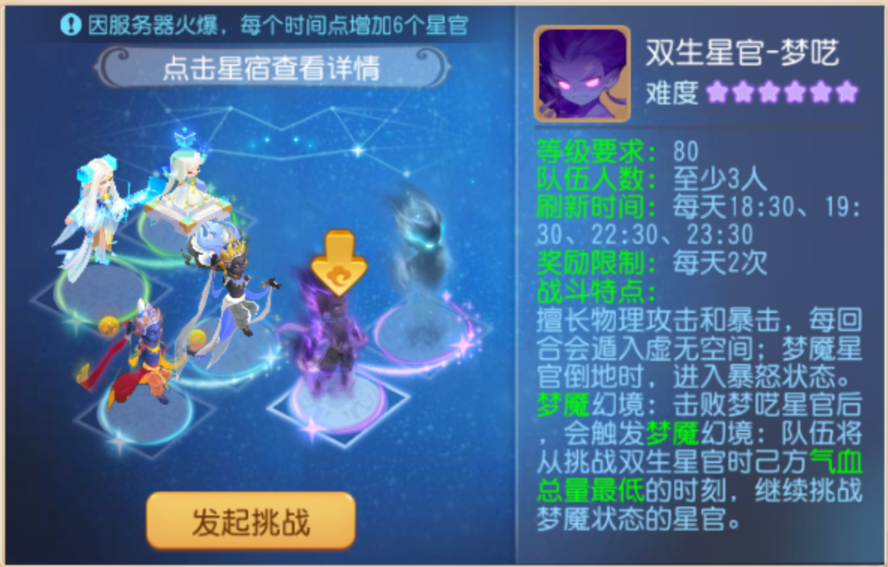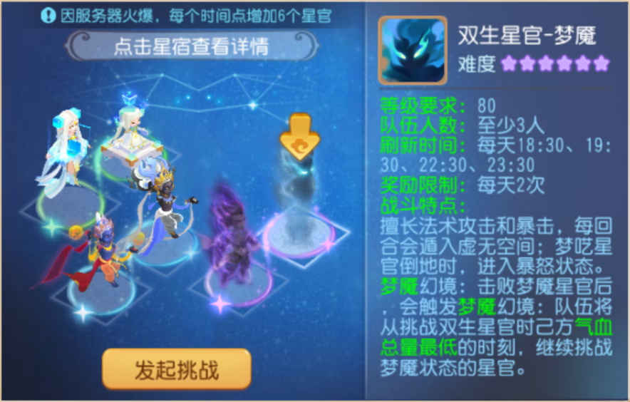 双生梦魇星官上线挑战成功奖励翻倍高兽诀等你拿!