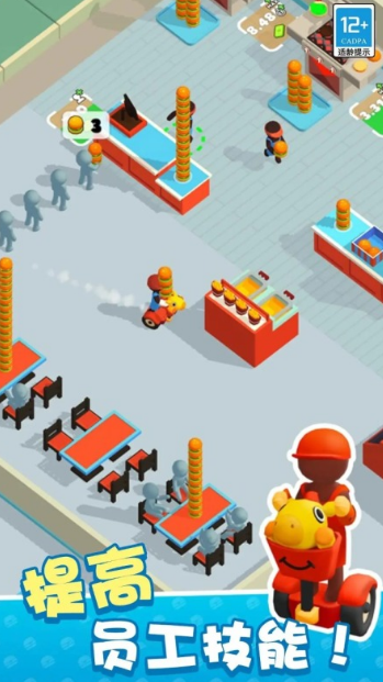 该游戏以快餐创业为核心玩法,采用萌系卡通美术风格,让玩家体验从零开始打造餐饮帝国的过程。需要持续购入新鲜食材与先进设备,合理安排员工分工,提高出餐效率。支持自由布局店内陈设,提升整体美观度。积累资金后可拓展新门店,引入自动化生产线减少人工操作负担,提升整体运营效率。