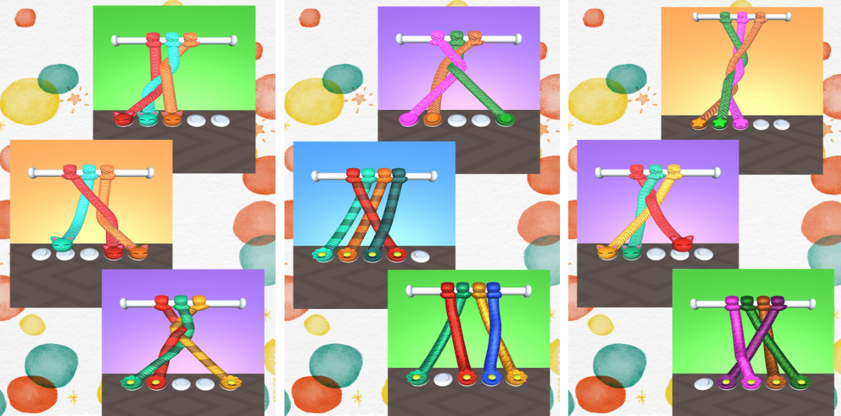 这是一款围绕“绳索”主题设计的3D益智解谜游戏,规则简洁但富有挑战性。游戏中每一关都需要玩家通过逻辑推理来理清缠绕交错的彩色绳索路径,完成指定目标。独特的物理引擎让拉扯与分离过程显得格外顺滑,视觉上五彩缤纷的绳体也提升了观赏体验。操作虽简单,但在高压情境下进行精准操控反而能起到良好的放松作用,是缓解压力的理想选择之一。