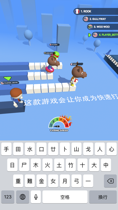 在《疯狂打字王》中,每一次准确敲击都会推动角色向上攀升。游戏采用竞技化设定,玩家需持续输入屏幕上出现的汉字,每个字根据笔画复杂度动态调整难度。没有辅助道具,也没有捷径可走,胜负完全取决于你的专注力和击键速度,真正考验盲打实力。