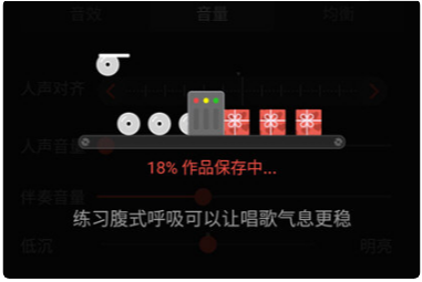 点击全民k歌录制一首歌,利用将人声音量调节最低,即没有人声音量,录制完成保存到本地成为伴凑,具体如下: