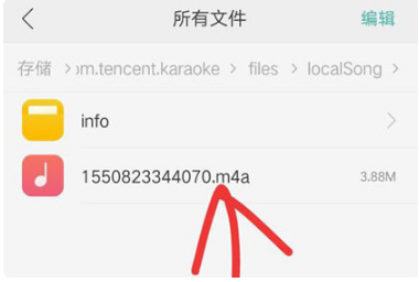 5、然后返回桌面,找到文件管理器中找到Android/data/com.tencent.karaoke/file/localSong文件夹下的歌曲,就是录好的伴奏。