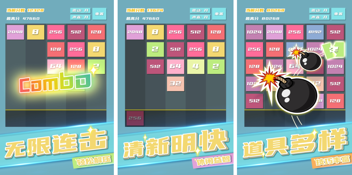 2048方块射击将数字消除与射击玩法有机结合,打造高速连击的畅快感受。游戏采用明亮简洁的画面风格,节奏明快,配合丰富的功能性道具,使合成流程更加高效流畅。当陷入困境时,可使用炸弹清除当前所有数字块,迅速扭转局势。这种融合减压与策略的设计理念,使得游戏既轻松又富有可玩性,是打发碎片时间的理想选择。