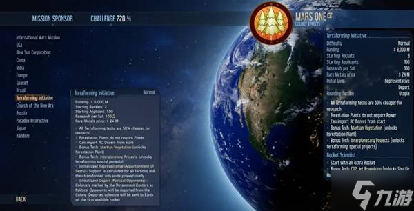 假设技术已就位,我们首先需要什么?钱,而且是大量的钱。因此,我们需要一个任务赞助者。《火星求生》中有13个赞助者,每个都有不同的目标和优势。?
