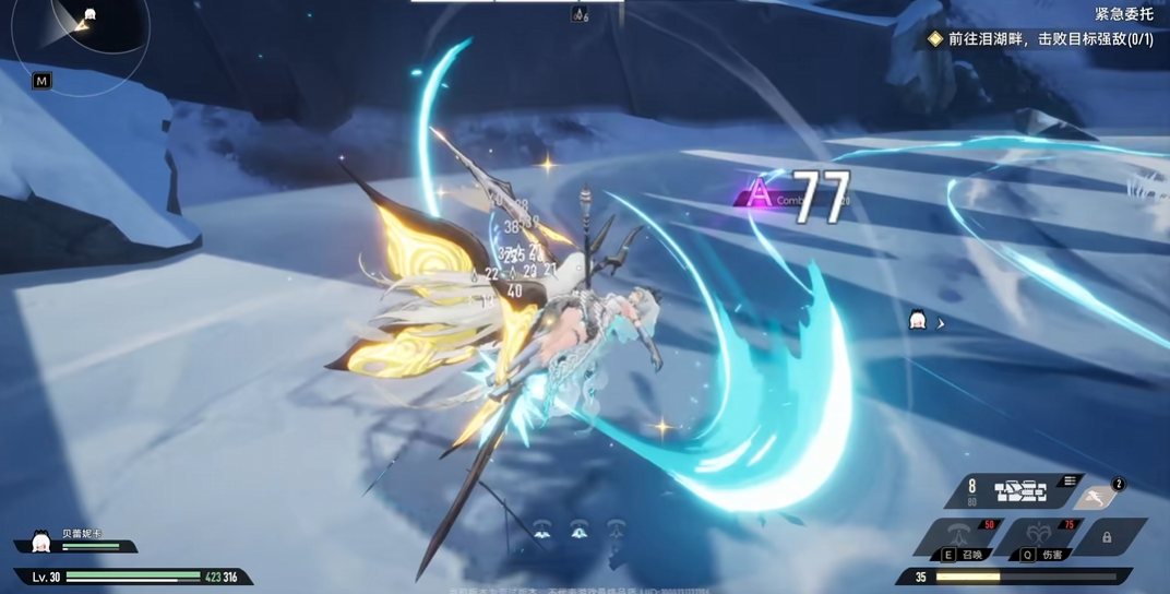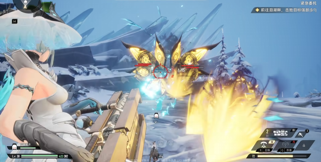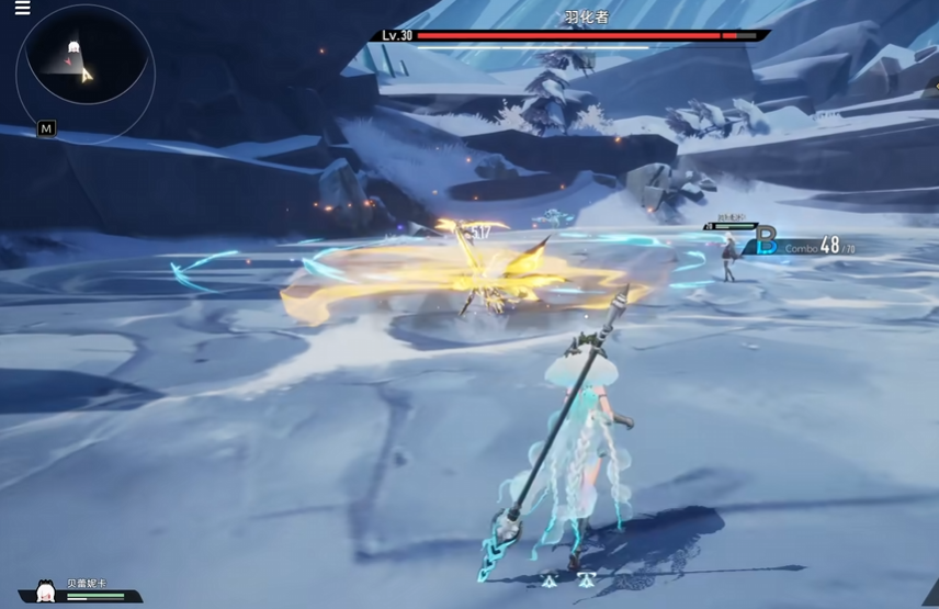 到了二阶段,boss基本都在空中,翅膀周围也有悬浮的金色光圈,这时候核心就在光圈,要集中精力攻击光圈,将所有光圈都击破,就能重创该敌人,此时她会落地,并进入较长时间的虚弱状态,此时就是输出最佳时机。