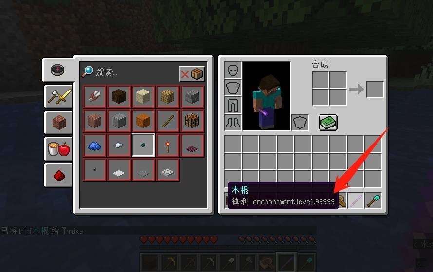 在Java版中,可以使用【/give @s minecraft:stick{Enchantments:[{id:"minecraft:sharpness",lvl:10}]} 1】指令获得锋利99999的木棍。在基岩版没有确切的指令来获取带附魔的武器。