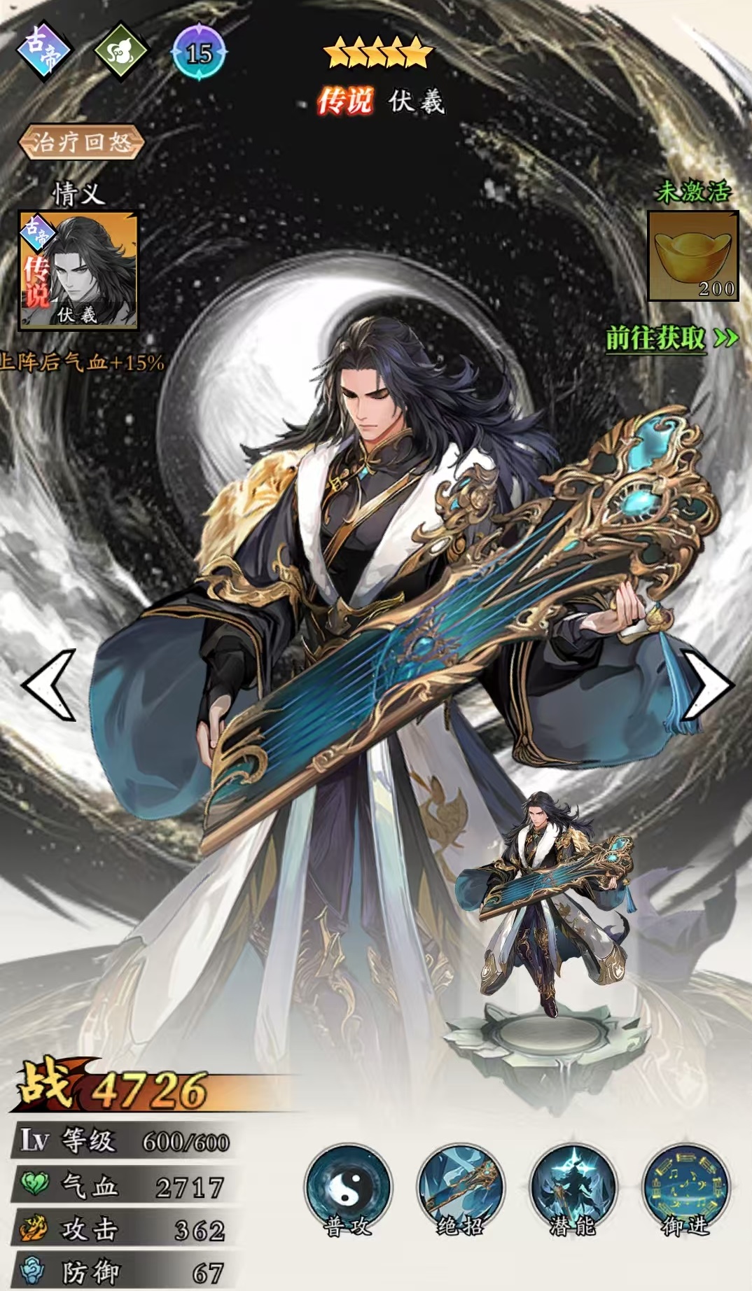 排名第四的是伏羲,伏羲的绝招是攻击全体目标,造成伤害后为我方全体角色恢复生命值,同时提升15%的攻击属性。在潜能的影响下,释放技能后还有几率恢复怒气,并提高20%的暴击,20%暴击伤害,对于整体阵容的输出有着很明显的加成。虽然伏羲在个体伤害方面不高,但是对整个队伍的作用是非常重要的。排名第五的是大禹,大禹的绝招伤害全体目标,会按照当前场上存活的单位数量来计算伤害,有几率附加一层幽浪效果,每回合扣除血量。