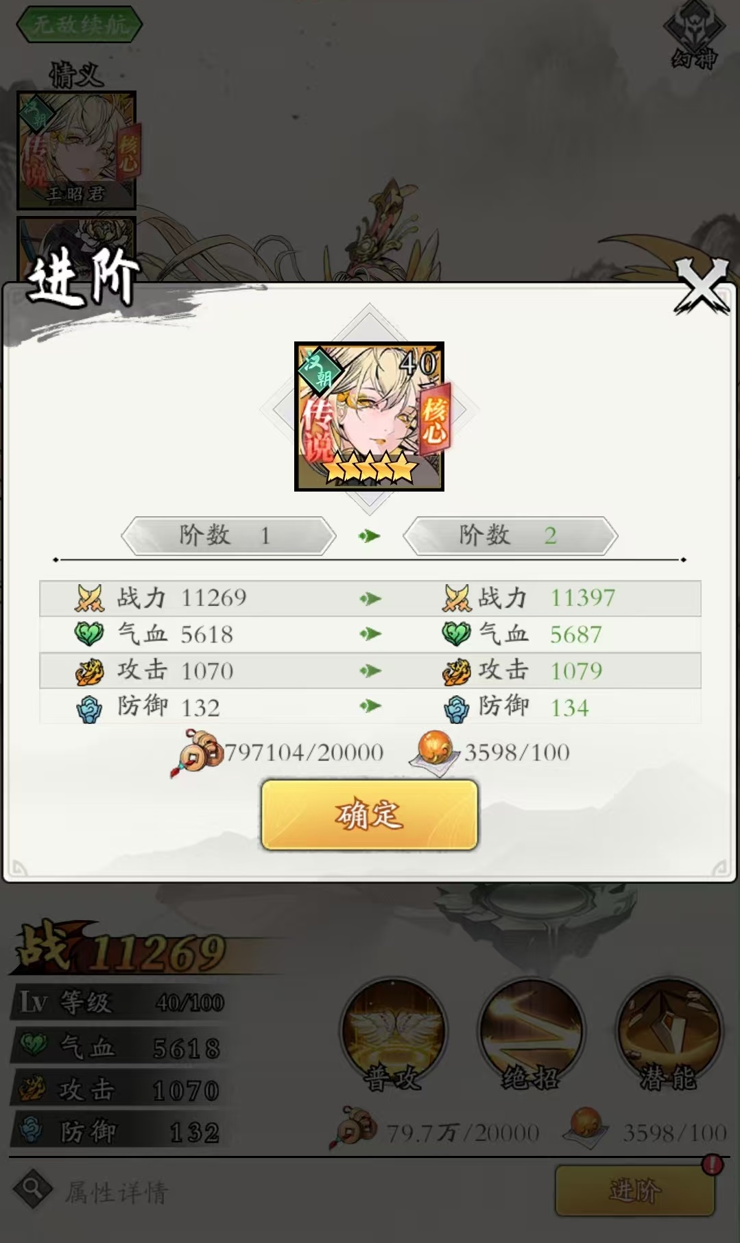 玩家抽取到的豪杰都会在界面中直接展现出来,点击界面下方的豪杰,就可以看到当前背包中的角色有哪些了。任意选择一个五星,就可以看到有升星的选项,升星需要消耗一个本体,还有一个五星级同阵营角色,然后点击升星,就可以直接提升星级达到六星。达到六星之后可以获得基础怒气提升,生命、攻击百分比提升等一系列效果。也只有达到了六星,才是能够应用于实战的开始。