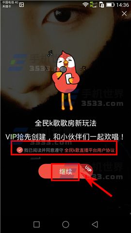 2)接着在选择阅读并同意遵守协议后点击【继续】,最后在编辑好歌房的相关信息后点击屏幕右上方的【完成】即可创建。PS:这里小编需要提醒大家的便是,若遇到无法创建的情况,或是因为VIP率先体验,可等其全线开放之时再玩。(如下图)