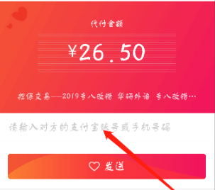 4、输入电话号码,因为支付宝是绑定手机的,输入手机号码就是直接让你的支付宝好友帮忙付款了。然后点击“发送”就行了,如下图所示。