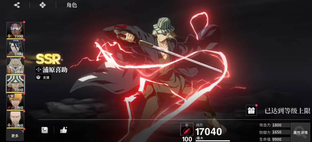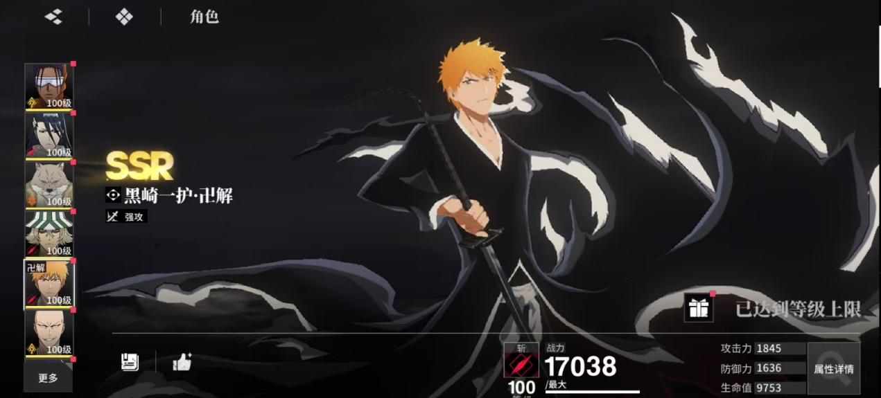 接着说一下强攻击位置,第1个选择的就是黑崎一护,这就是开服之后的第1个角色。爆发的伤害还是比较出色的,一旦在进入卍解状态后,普通攻击就会附带穿透剑气的效果,清场的效果还是比较快的。大招月牙天冲还是很厉害的,就可以穿透直线上的所有目标,而且放技能时还会有一个霸体效果,并不需要害怕被敌人打断。在打boss或者是清理小怪的时候,真的比较靠谱。