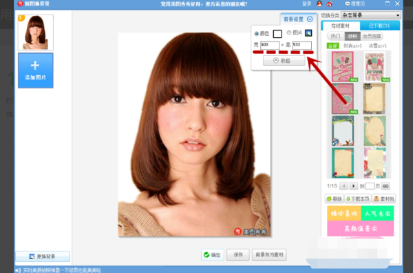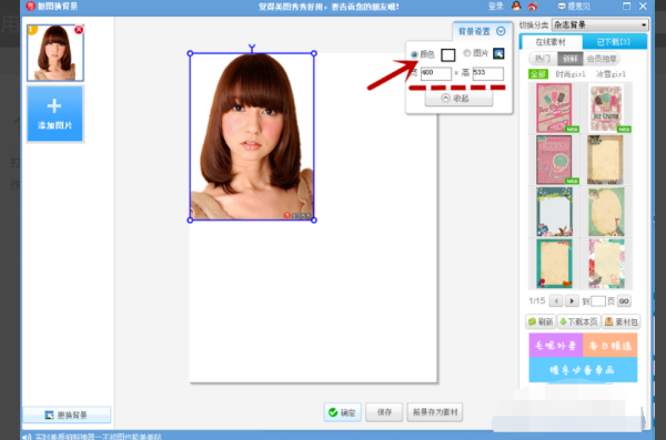 6、背景选择后,可以用鼠标拖动图片,也可以选择背景设置的规格尺寸设置,即可完成。