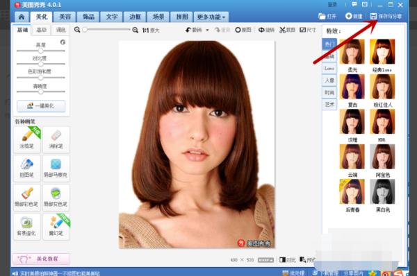 7、将完成后的图片点击右上角的保存按钮,保存至电脑中。