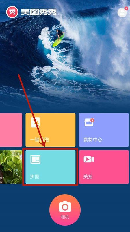 二、打开“美图秀秀”App后点击“拼图”进入。