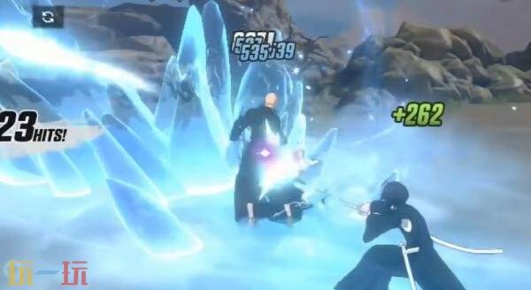 露琪亚抵挡敌人的攻击后,挥舞袖白雪进行反击,造成伤害,并冻结敌人。