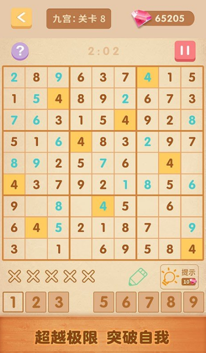 本作是一款经典的数字逻辑游戏,规则简单但极具挑战性:在9×9的格子中填入数字,使每行、每列以及每个小九宫格内的数字都不重复。游戏提供了大量关卡,难度循序渐进,新手也能快速上手。当遇到难题时,系统还配备了提示功能帮助玩家继续推进。你可以根据自己的节奏选择不同难度模式,随时随地开启一场头脑风暴,训练专注力与推理能力。