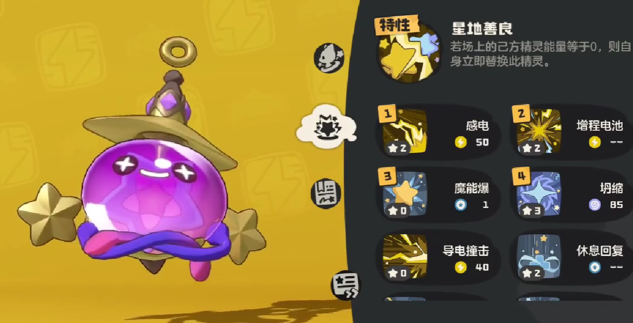 小皮球核心特性“心地善良”,如果场上的己方精灵能量低于零,则自身可以立刻替换该精灵,由于特性效果,小皮球可以协助其他的玩家在缺少能量时,快速上场,赋予队友再战机会。
