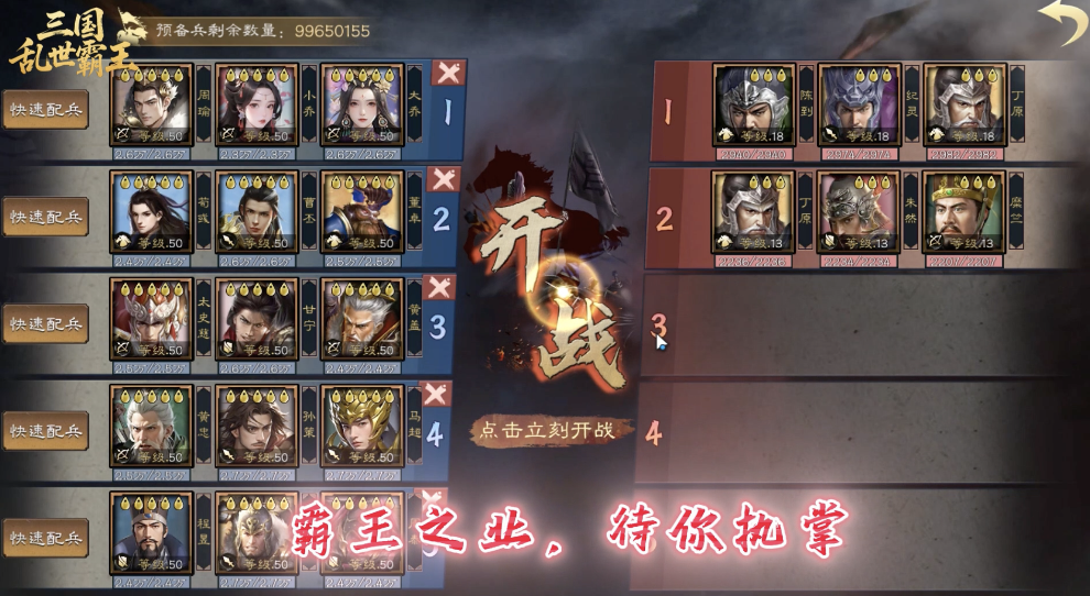 不同名将之间有着特色技能和羁绊,玩家可以使用不同的策略搭配。也可以根据自己的喜好和战斗需求组合每次最适合出场的英雄阵容。无论是冲锋陷阵的猛将,还是运筹帷幄的谋士,在阵容的不同位子都能发挥很好的攻击能力。