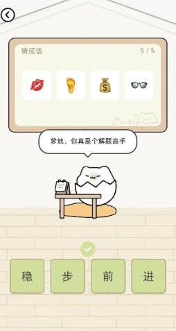 这款游戏把成语组词与策略闯关创新结合,玩法上,你需要通过组出正确的成语来占领城池,扩张领土,每闯过一关就能解锁新地图与新关卡,成语难度层层递进,从日常常见成语到生僻成语,既能考验已有成语储备,又能帮你拓展词汇量,闯关成功时的胜利音效,领土扩张的动态画面,让人热血沸腾,越玩越想挑战更高难度,在竞技感中轻松积累成语。