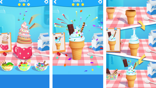 大家的脑洞有多大,就能做出别的冰淇淋卷,手里的工具要用明白,就能帮大家加快制作速度。每个顾客都有自己想要的口味和样式,尽量满足他们的要求,配料能随便选还能升级,操作也特别简单,做出来的冰淇淋看着就超有食欲,各种颜色随便加,配料多到挑不过来。从新鲜水果到香浓巧克力都有,混搭起来味道绝了,画面做得很精致,做冰淇淋的时候还能顺便截表情包,跟朋友聊天直接发也很方便。