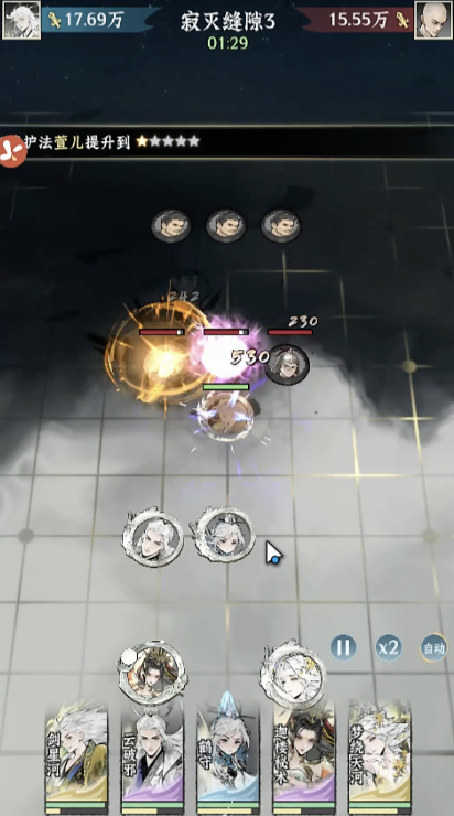 进入剑渊秘境后,主角可以御剑飞行,自由探索。按照主线任务的指引,清理各种被“寂灭”入侵的小怪。在秘境里的战斗,是以棋子的形象来调整站位进行战斗。最终的大Boss实力不容小觑,不过打败它后爆出的东西很不错。
