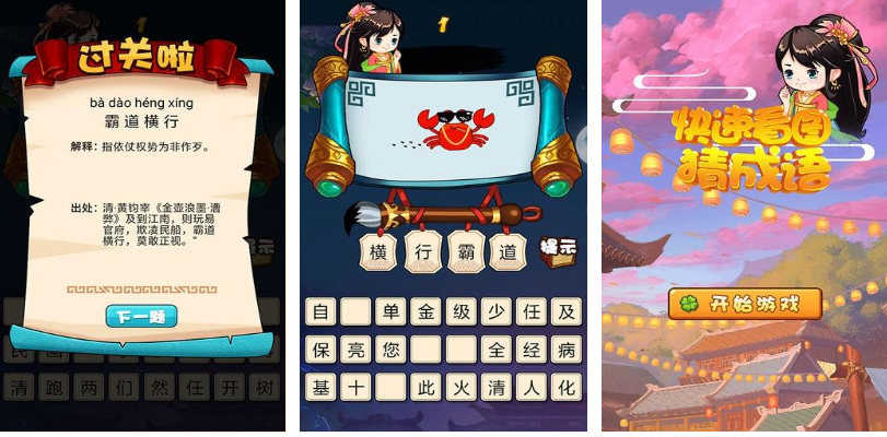 看图猜成语是一款融合古典美学与智力挑战的优质解谜作品,每一道关卡均采用不同风格的古风插画来暗示成语含义,玩家需根据画面细节进行联想与推理。游戏内置大量成语解析内容,帮助理解背后的文化典故,不仅提升词汇量,也强化记忆效果。整体操作流畅,界面简洁,是沉浸式学习成语的理想选择。