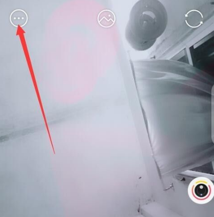 打开手机上的Faceu激萌,进入拍摄界面,点击左上角的按钮,如图红箭头所示位置。