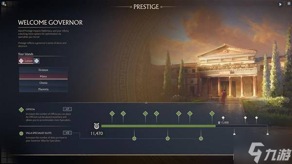 别墅配有多个插槽,可以放置专家。您的声望属性越高,您解锁的插槽就越多。PRestige 是通过某些需求和公共建筑,以及您的城市地位和装饰品(包括美丽的大理石道路)获得的。