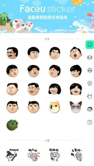 进入到贴纸页面,就可以随便选择你想要的贴纸,进行p图啦,至于裁剪就可以直接使用手机相册自带的裁剪工具啦,或者使用美图秀秀。美颜效果不用说,faceu的美颜功能很强!
